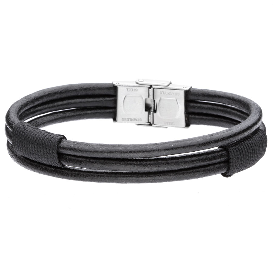 Bransoletka męska skórzana, stal szlachetna BA780B