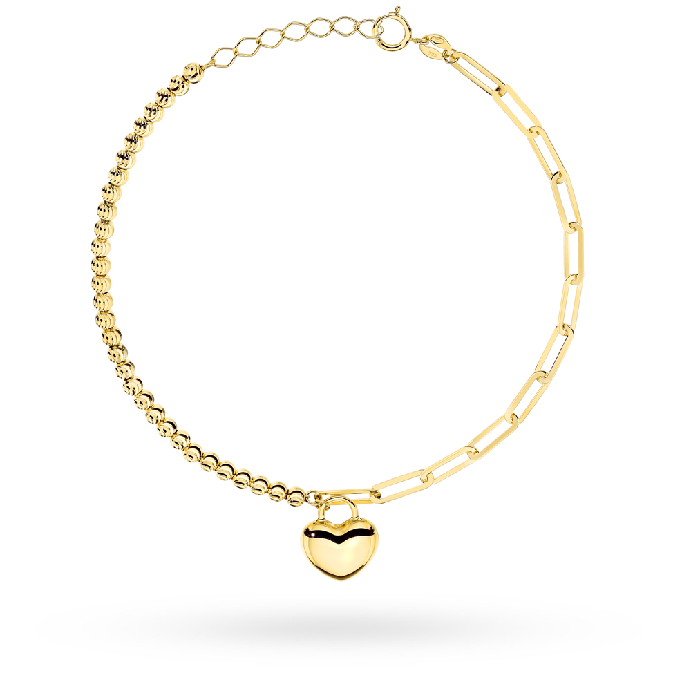 Bransoletka złota serce, długie ogniwa i diamentowane kulki FUG2-B01159-585