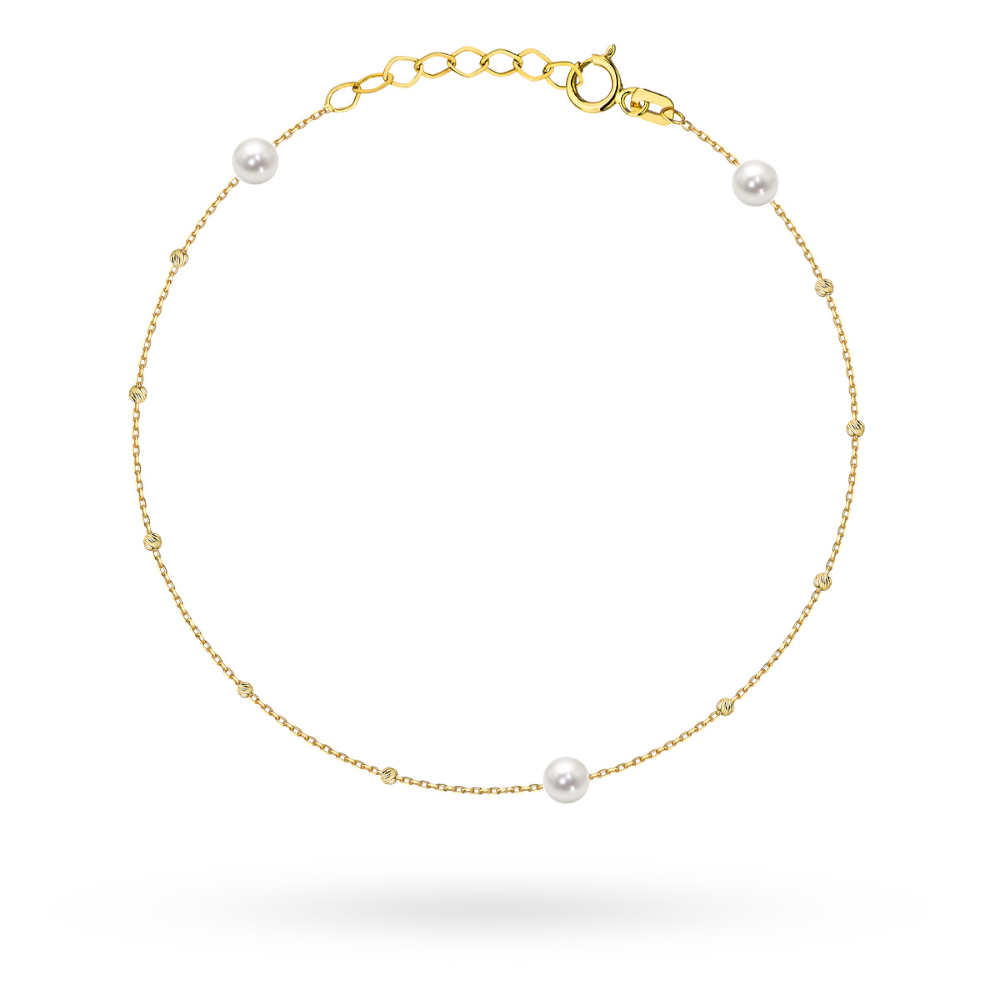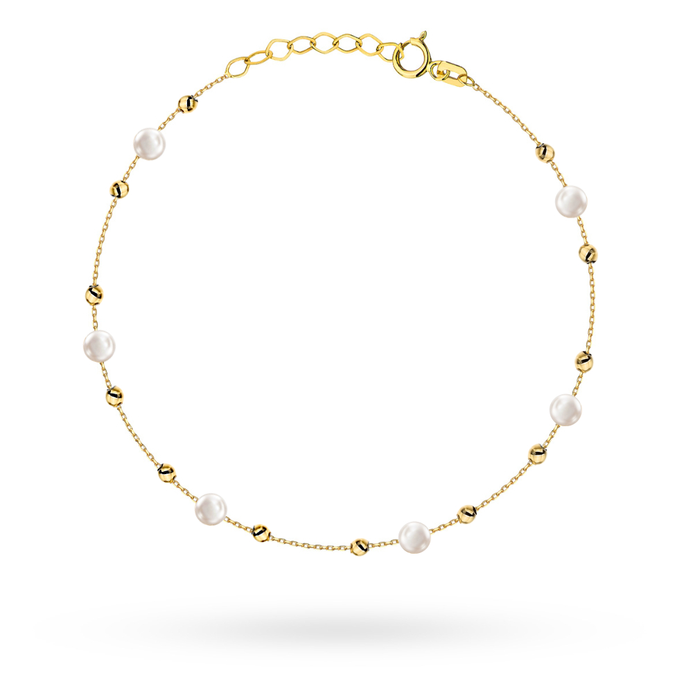 Bransoletka złota z perłami i gładkimi kulkami FUG2-B01146-585