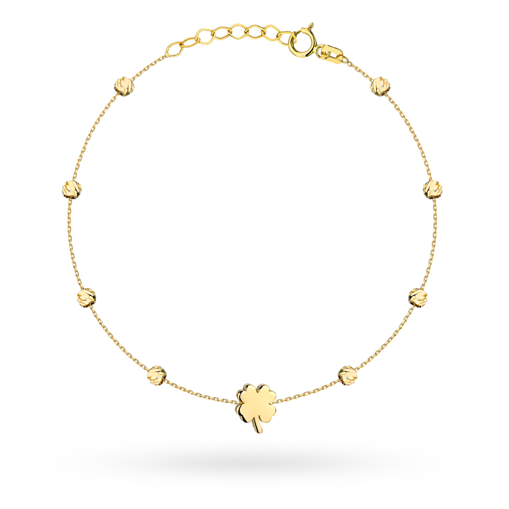 Bransoletka złota z małymi diamentowanymi koniczynkami FUG2-B01150-585