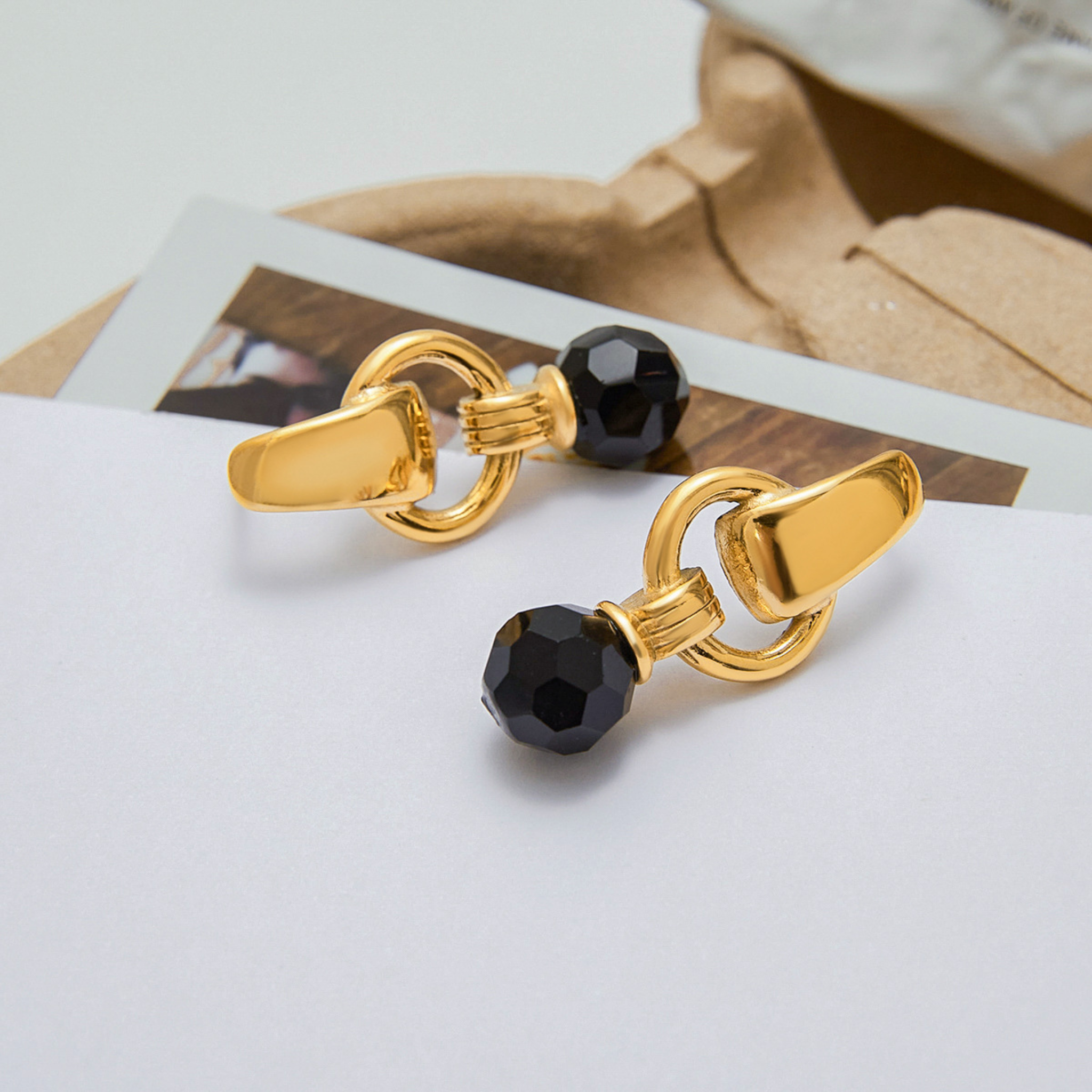 Kolczyki z czarnym kryształem FUGJDE0103043