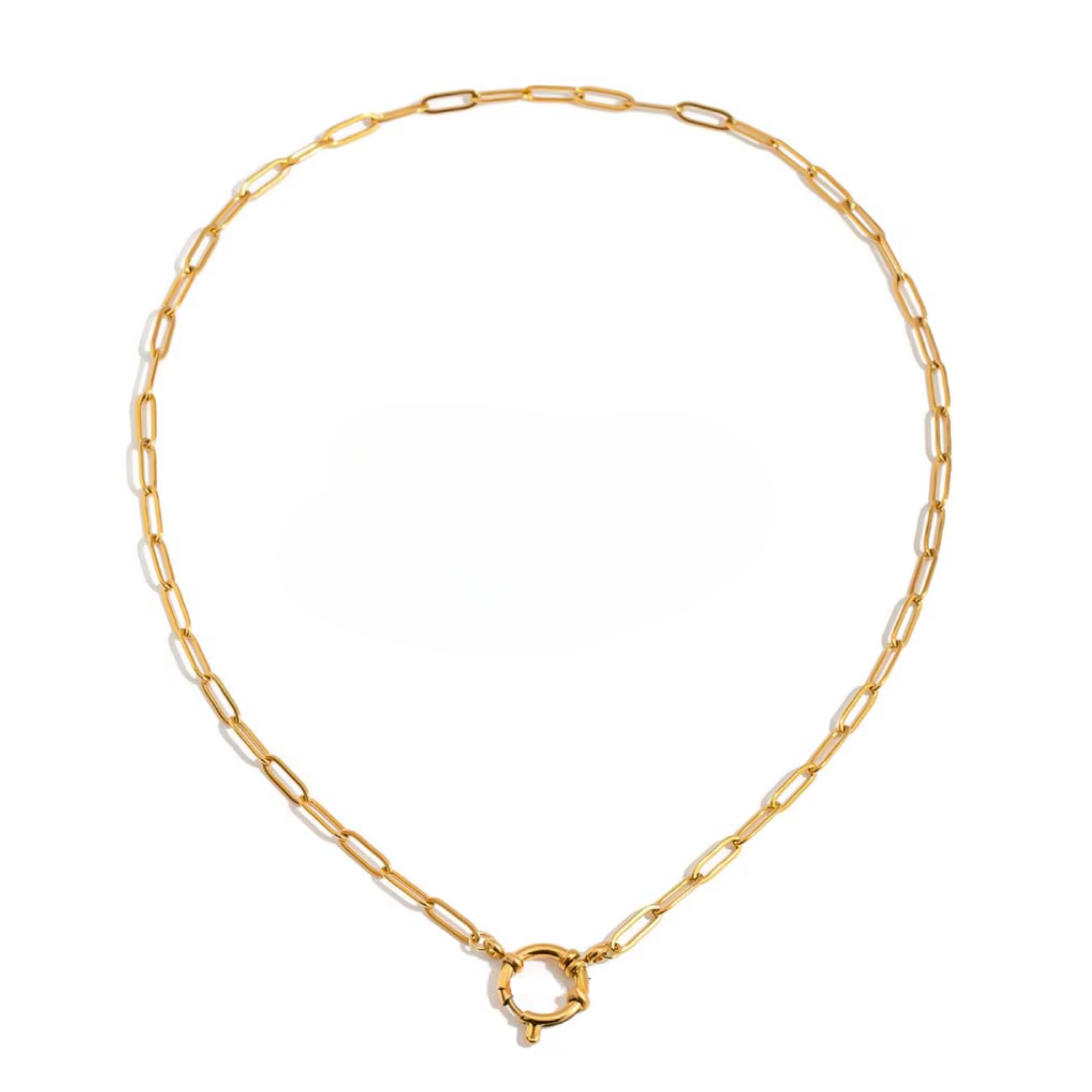 Ten elegancki naszyjnik zachwyca swoją minimalistyczną formą. Wykonany ze stali szlachetnej pokrytej 18-karatowym złotem.