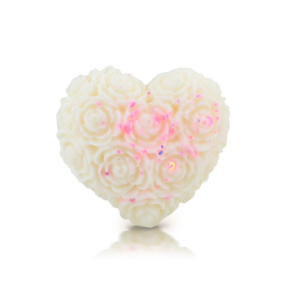 Wosk w kształcie serca, ozdobiony brokatem. Wosk ozdabiamy brokatem w kolorze różowym, błękitnym oraz czerwonym*