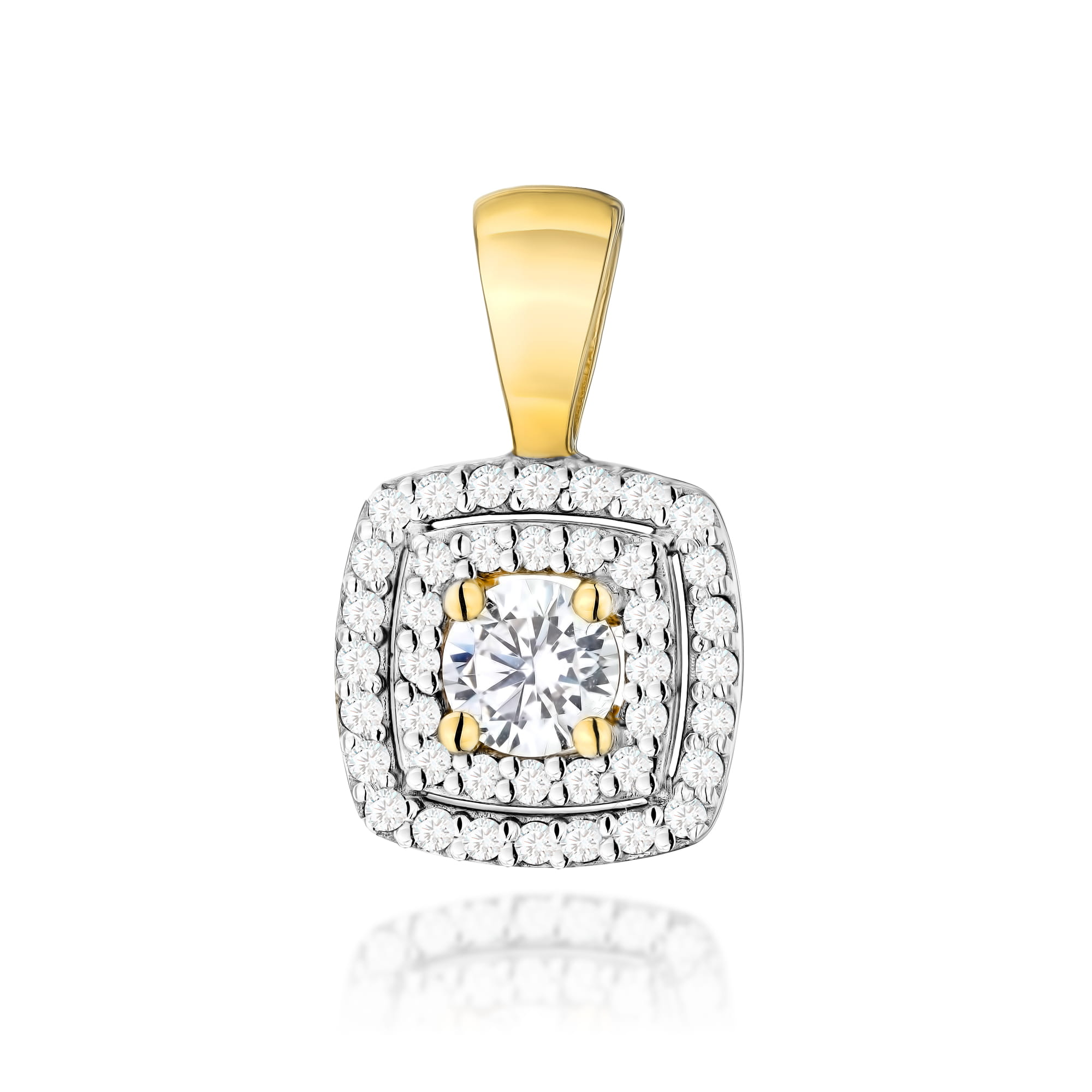 Klasyczna zawieszka, która zachwyca ponadczasową elegancją. Wykonana została z lśniącego żółtego złota próby 585, udekorowana diamentami laboratoryjnymi o imponującej czystości VS2 i barwie F oraz łącznej masie 0,50 ct! (1 x 0,30 ct oraz 40 x 0,005 ct).