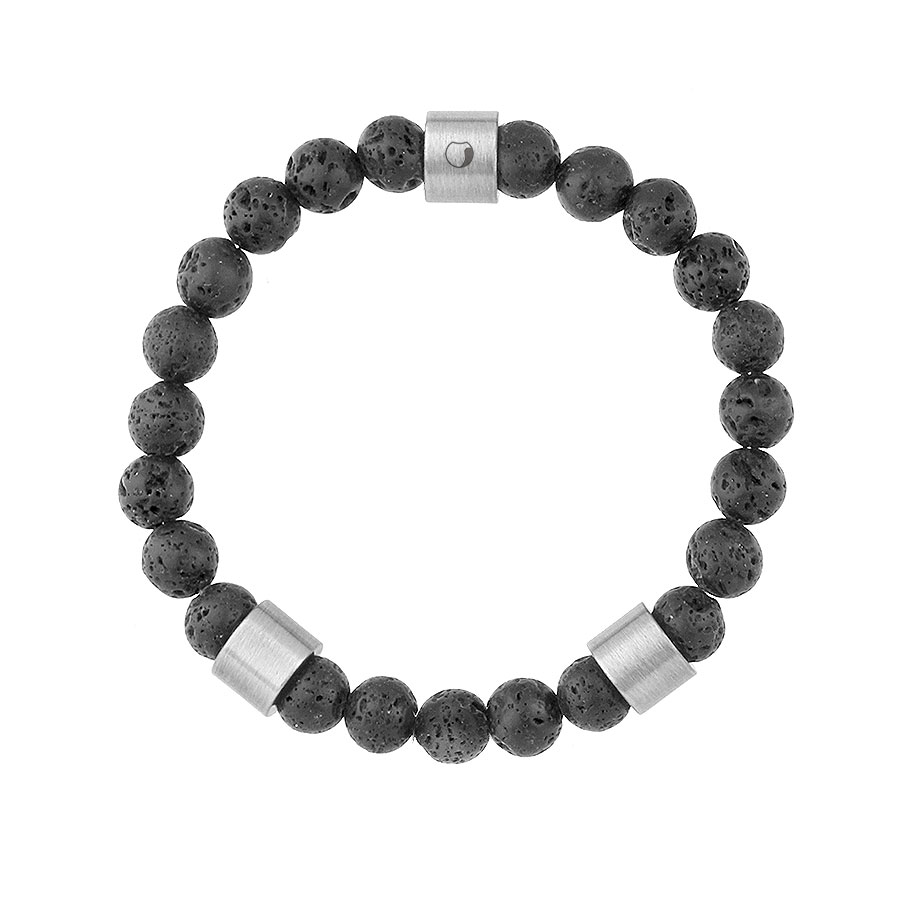 Efektowna bransoletka męska wykonana z czarnej lawy wulkanicznej. Wykończona została elementami - zmatowionymi, stalowymi beadsami. Koraliki nawleczone ręcznie na wytrzymałą gumkę jubilerską o długości 21 cm - pasuje praktycznie na każdy męski nadgarstek.