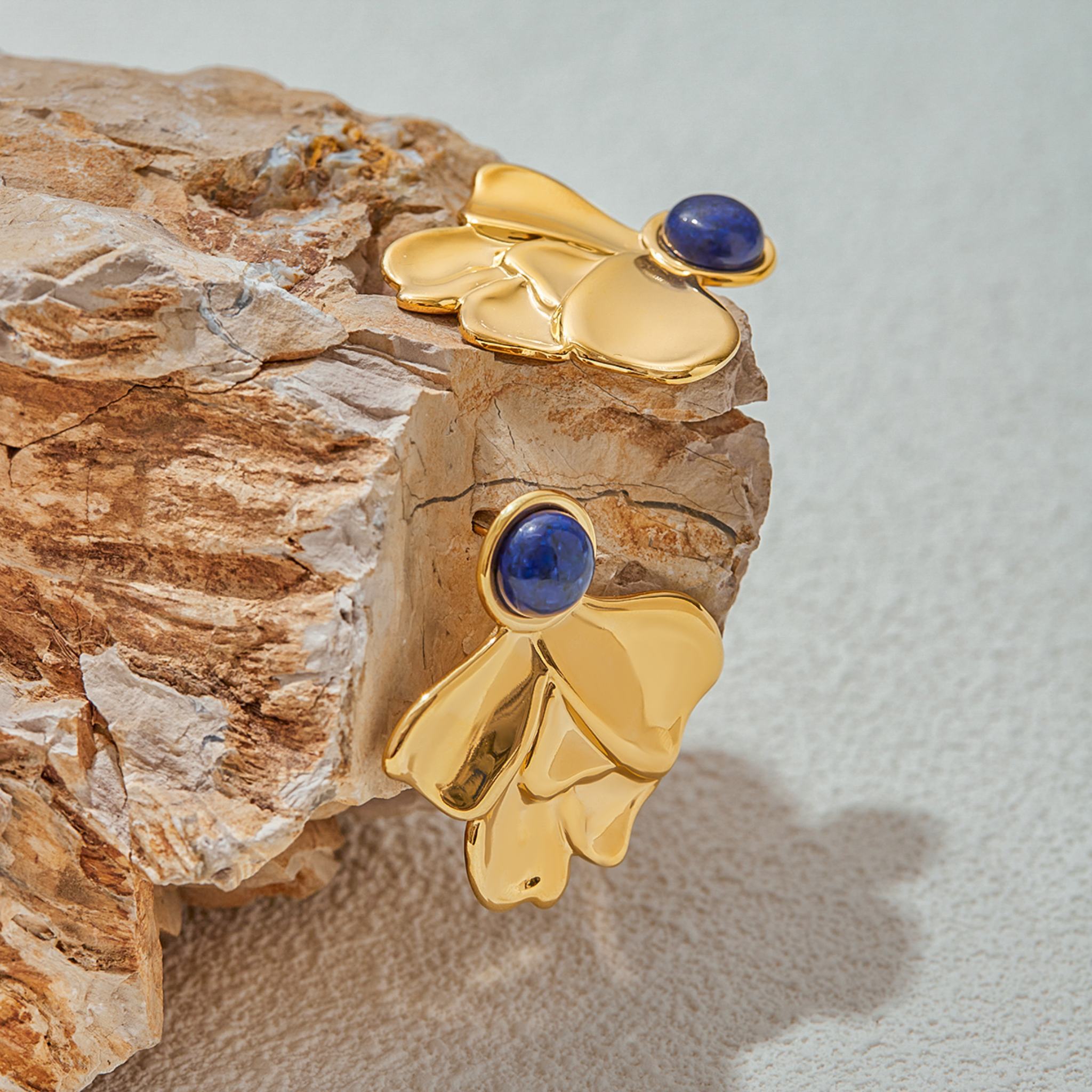 Głęboki niebieski kamień, od wieków kojarzony z intuicją i mądrością, pięknie kontrastuje ze złotą oprawą, tworząc kompozycję idealną na lato, jesień… i wszystkie dni, w które chcesz się wyróżnić. Kolczyki są lekkie, mimo swojego wyrazistego rozmiaru – 3,9 cm x 3,6 cm – i doskonale układają się przy twarzy, nadając stylizacji elegancji z artystyczną nutą.