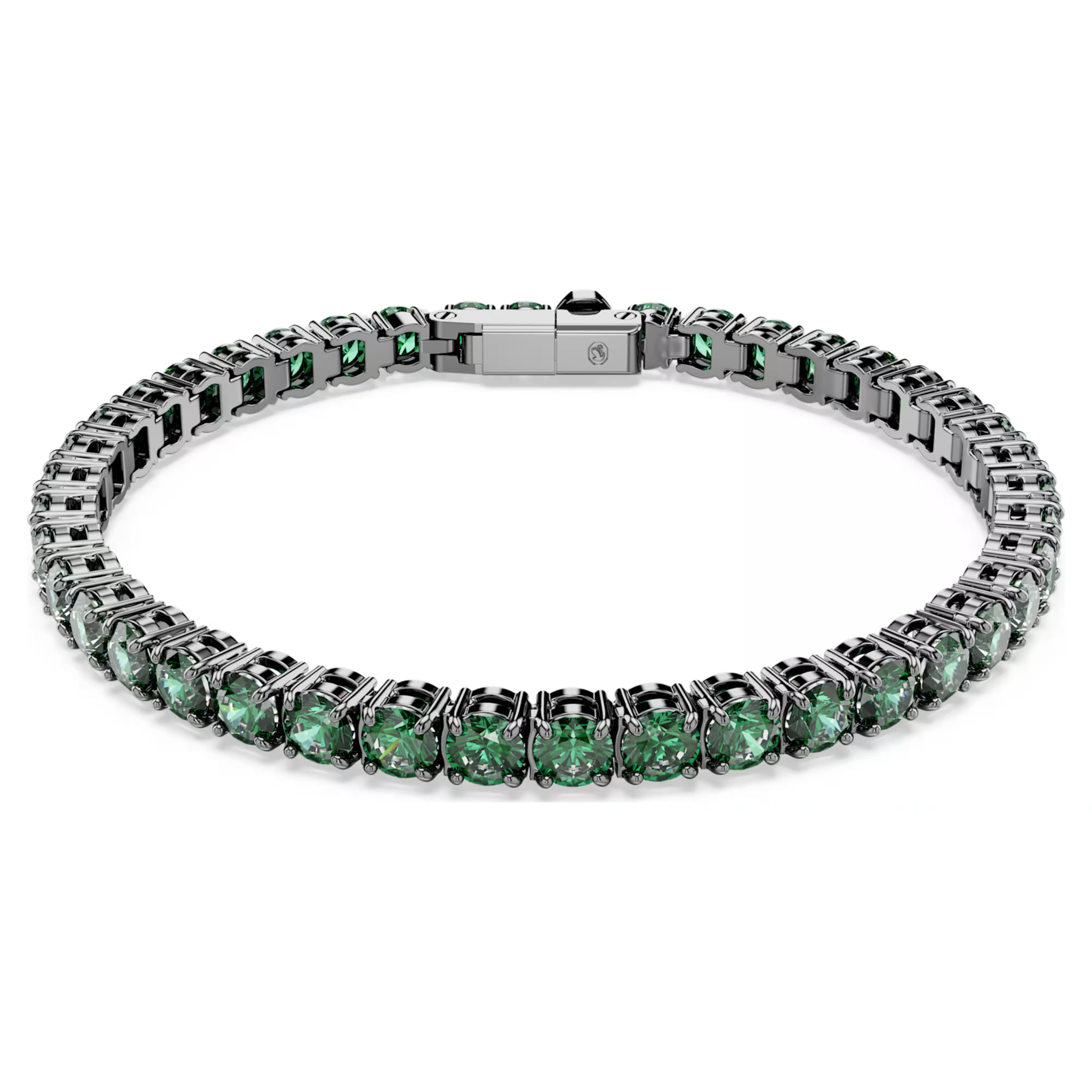 Ta lśniąca bransoletka Swarovski Matrix Tennis zachwyca nowoczesnym połączeniem hipnotyzującej zieleni Swarovski Zirconia z chłodnym, wyrafinowanym rutenowym wykończeniem. Jednolity układ kamieni tworzy harmonijną linię światła, która pięknie odbija refleksy i wydobywa głębię koloru przy każdym ruchu nadgarstka.