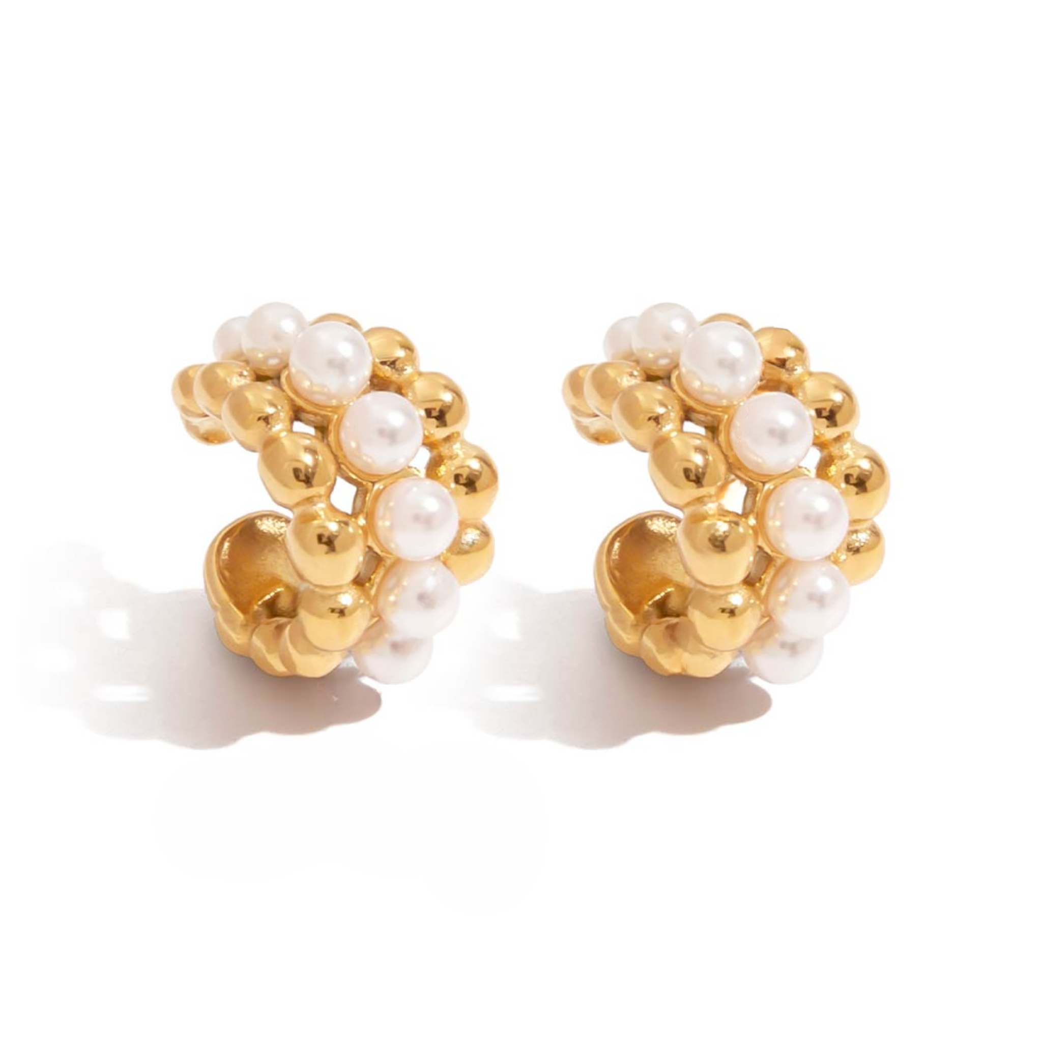Podkreśl swój indywidualny styl dzięki nausznicy „Pearl Whisper”, która zachwyca połączeniem klasyki i współczesnego designu. Wykonana ze stali szlachetnej pokrytej 18k złotem, zdobiona syntetycznymi perełkami, tworzy delikatną, a jednocześnie efektowną kompozycję oplatającą ucho.
