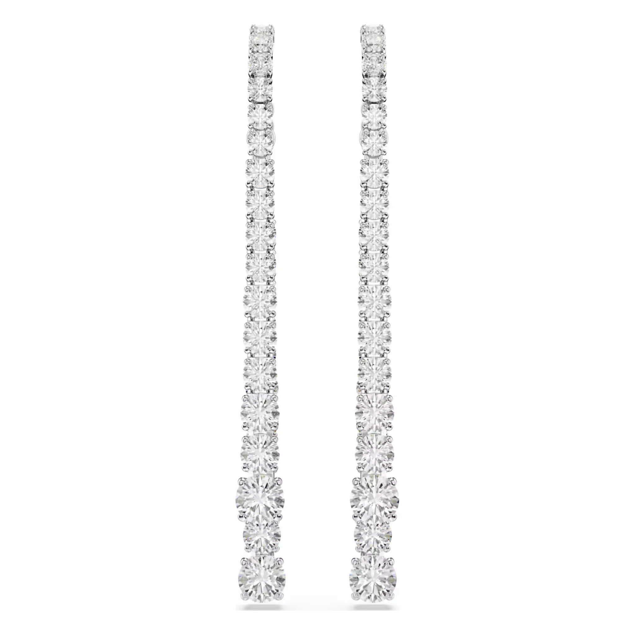 Każdy z kolczyków pokrytych powłoką z rodu jest wykonany z dwóch pasm bezbarwnych cyrkonii Swarovskiego, ułożonych od najmniejszej do największej. Efekt jest zarazem elegancki i odważny, dzięki czemu te wyraziste kolczyki sprawdzą się podczas każdej wyjątkowej okazji.