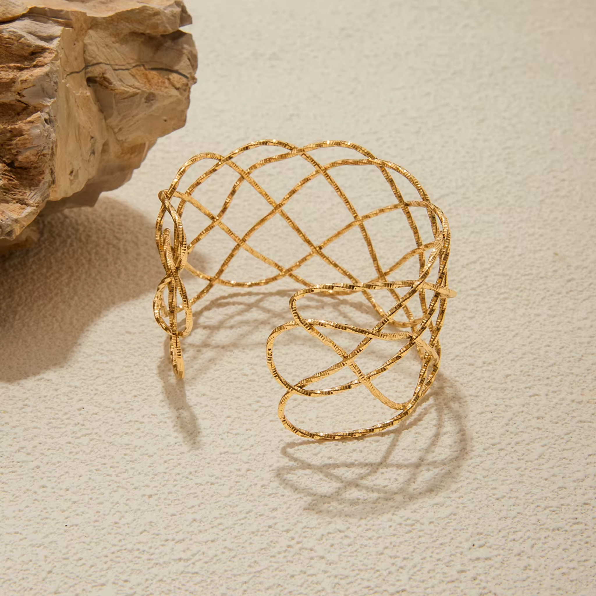 Ta elegancka bransoletka typu mankiet to biżuteria, która mówi więcej niż słowa. Wykonana z trwałej stali szlachetnej i pokryta 18-karatowym złotem, zachwyca prostotą formy i nowoczesnym charakterem.