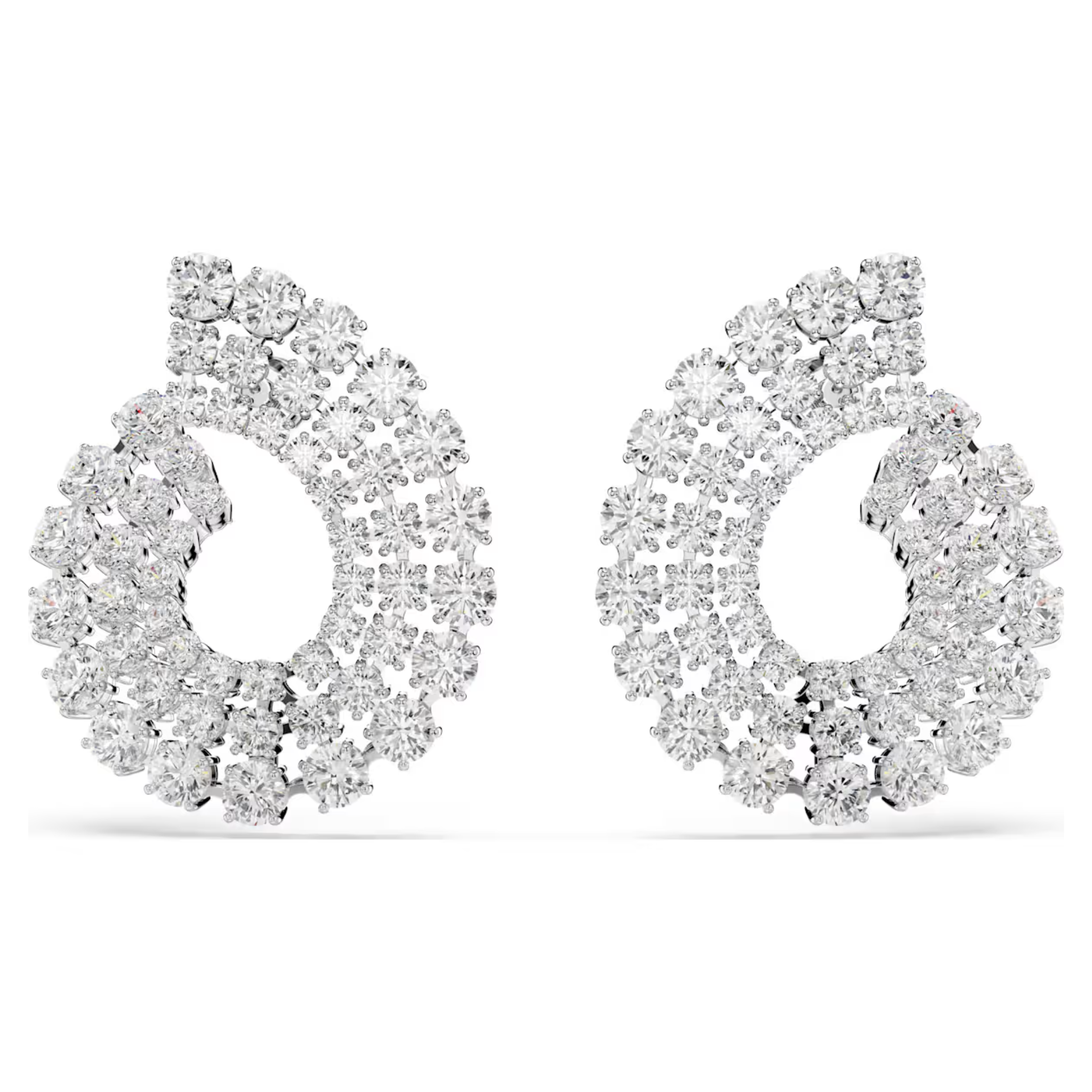 Kolczyki są pokryte powłoką z rodu i ozdobione bezbarwnymi cyrkoniami Swarovskiego.