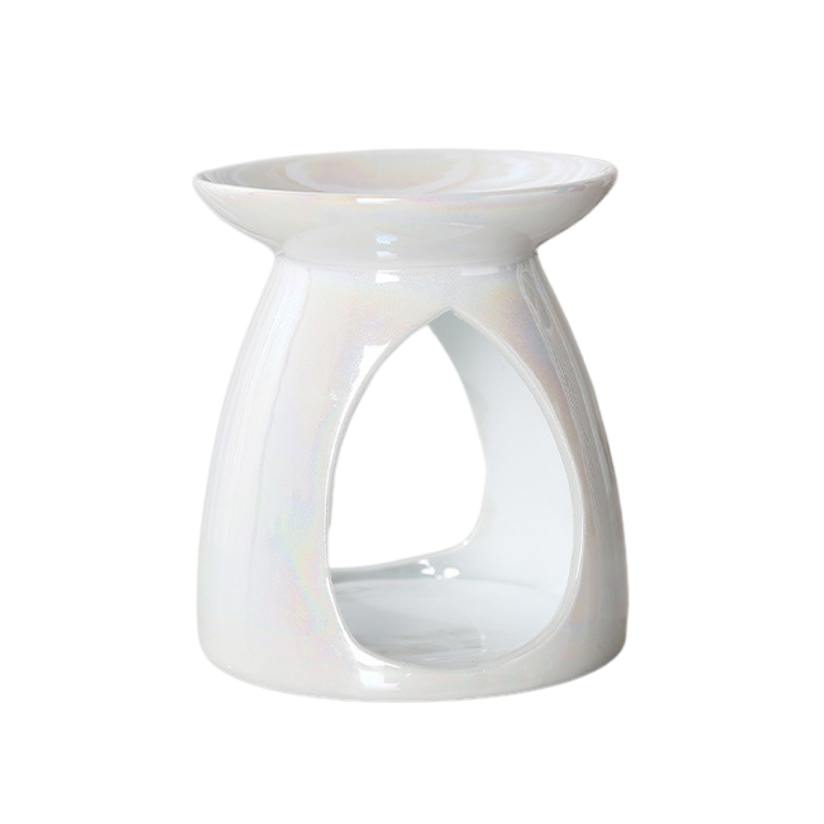Biały opalizujący kominek ceramiczny do roztapiania wosku. Praktyczny i uniwersalny daje Ci możliwość mieszania wielu zapachów.