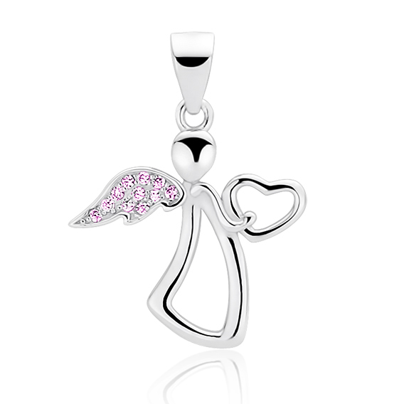 Srebrna zawieszka anioł z różowymi cyrkoniami FUGZ1601CLP