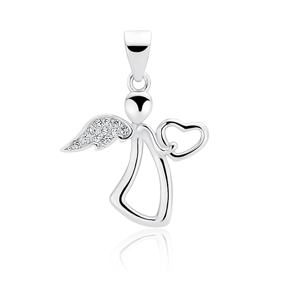 Srebrna zawieszka anioł z białymi cyrkoniami FUGZ1601C