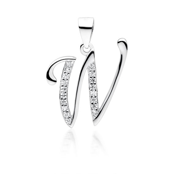 Zawieszka srebrna literka W z cyrkoniami FUGLZ0002_W